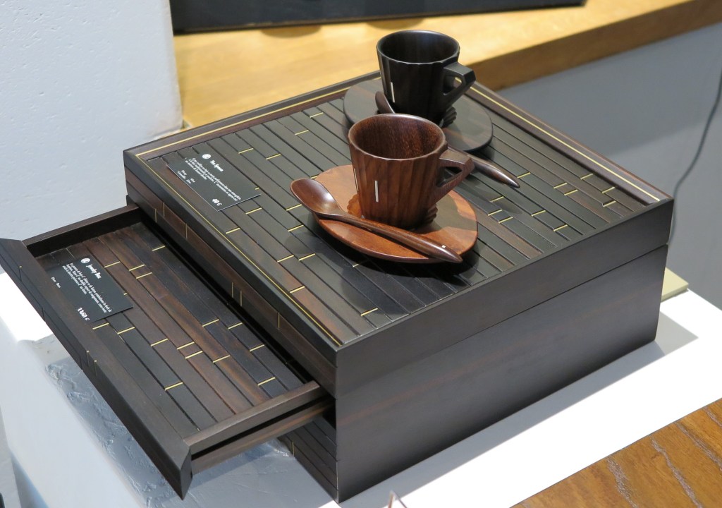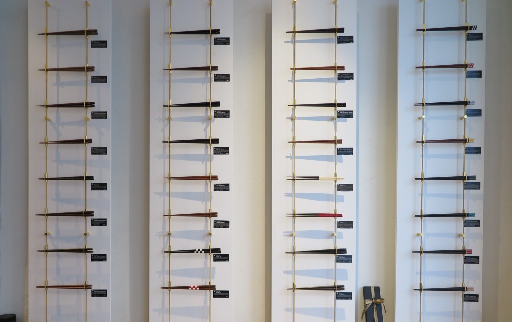 Il y a également une conscience écologique chez Marunao, puisque les restes de morceaux de bois non utilisés sont eux aussi transformés pour la réalisation d’autres objets ! D’ailleurs, chez Marunao, on ne fabrique pas que des baguettes, la marque étendant progressivement son savoir-faire à la fabrication d’autres couverts et d’autres objets du quotidien comme des tasses, des dés ou encore des porte-cartes. Le plus bel exemple de réutilisation des extrémités de bois dédiés à la création de baguette est l’immense tableau de bois sur lequel figure le logo de Marunao et qui orne les boutiques de la marque, soit à Tôkyô, Sanjo et maintenant Paris. Que vous utilisiez des baguettes ou non, il n’y a donc aucune raison de ne pas se rendre dans la boutique parisienne car vous y trouverez forcément votre bonheur ou celui d’un de vos proches, si tant est que vous appréciez les objets en bois et de haute qualité.