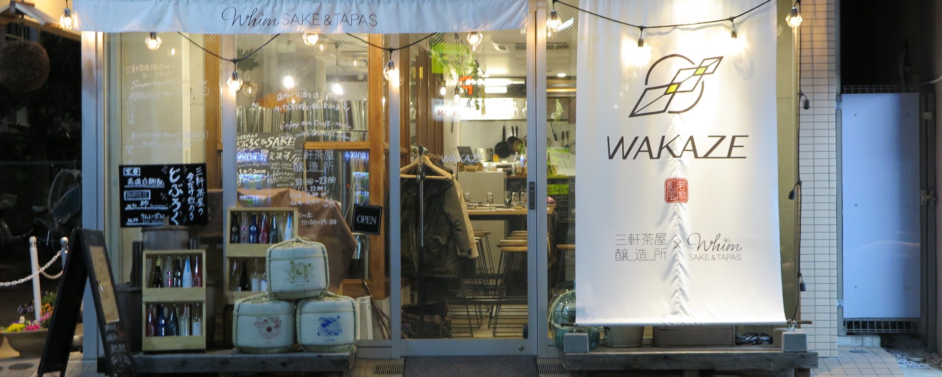 Photo : devanture de Wakaze à Sangenjaya et Whim Sake & Tapas ©TokyoatParis