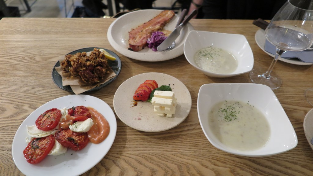 Quant aux plats, il s’agit plutôt de recettes d’inspiration occidentales. Après avoir été accueillis par une mise en bouche, lors de notre venue une soupe de pomme terre, n’hésitez pas à suivre les recommandations de l’équipe sur les mets à associer à vos boissons. De notre côté, nous avions opté pour des tomates mozzarella, une épaisse tranche de bacon au sakekasu (lie de saké) ou encore une assiette de charcuterie. Celle-ci est mixte, proposant des charcuteries européennes comme des charcuteries de porc de Yamagata (où se trouve le siège de Wakaze Japan). On se retrouve donc avec un petit assortiment de jambon blanc, du jambon cru, des tranches de saucisson sec, du saucisson à l’ail et des petites tartines de pâté. Nous avions également choisi le cream cheese au sakekasu accompagné de morceaux de fruits qui vaut également le détour. A noter que la plupart des ingrédients employés dans les plats proposés proviennent de la région de Yamagata. Vous trouverez également au menu quelques recettes japonaises comme un poulet karaage légèrement épicé !