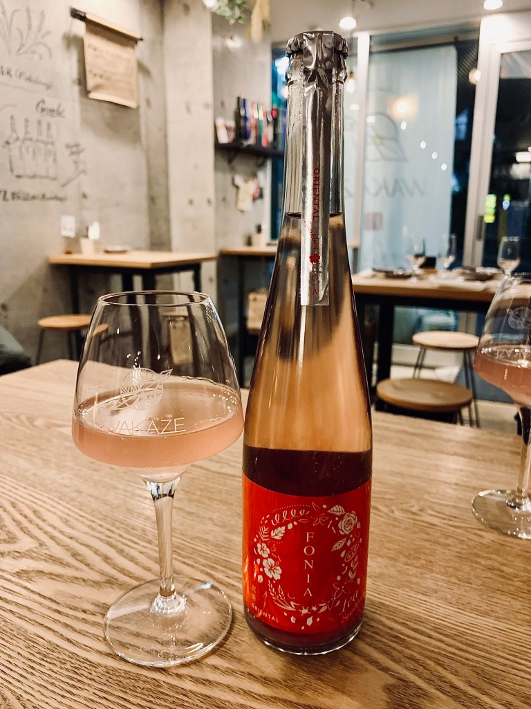 Parmi les sakés qui pourraient éventuellement être présents sur le territoire français avec l’ouverture du restaurant Wakaze France, outre le saké Orbia Luna que nous avions déjà essayé au Salon du Saké, nous avons dégusté en apéritif le sparkling saké Fonia Oriental. C’est un saké pétillant aromatisé au thé et de fleurs notamment d’hibiscus et pétales de rose. Au nez, le parfum des fleurs d’hibiscus est bel et bien présent, mais contrairement aux apparences, c’est un saké qui n’est pas sucré mais plutôt légèrement amer en bouche et qui se boit facilement car délicieux.