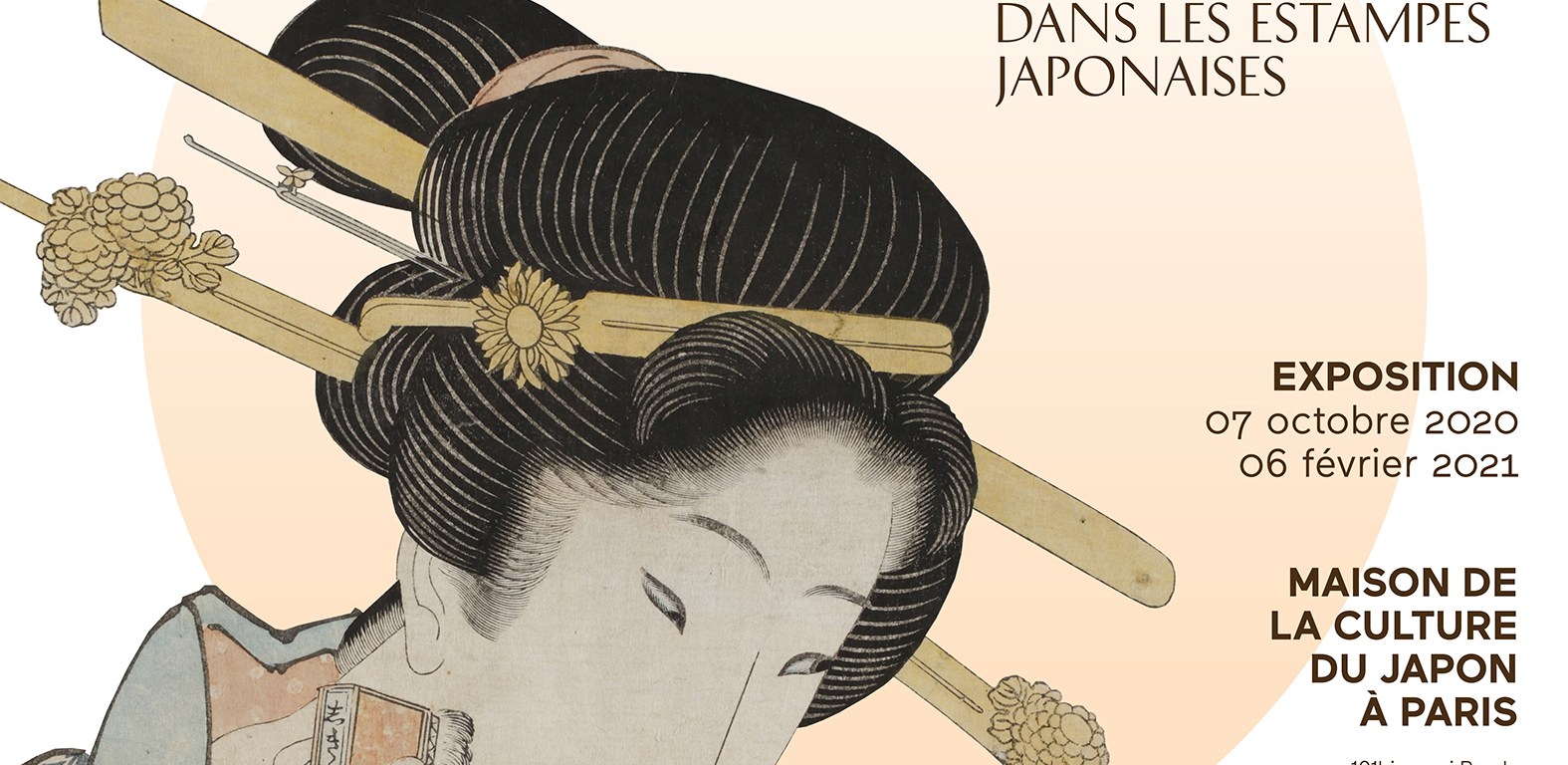 - Secrets de beauté. Maquillage et coiffures de l’époque Edo dans les estampes japonaises, du 7 octobre 2020 au 6 mars 2021 à la MCJP. 2ème volet à partir du 19 janvier 2021, Salle d’exposition au 2ème étage : 5€ sur réservation ici.