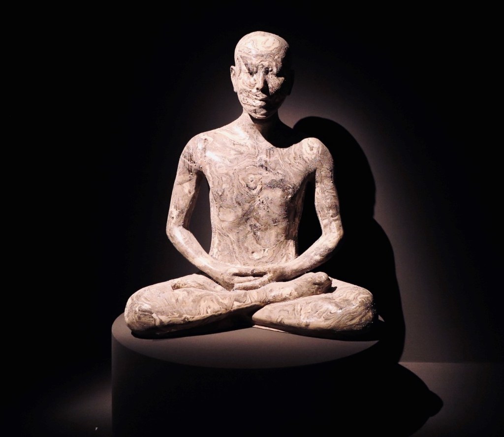Dans un coin du musée, les organisateurs de l’exposition a mis en scène une salle de méditation où trône un magnifique Amida-nyorai auprès duquel on peut retrouver Réduction de Takahiro KONDO (auparavant située dans la rotonde de la bibliothèque du musée au côté d’autres statues bouddhiques), une œuvre certes contemporaine mais qui a toute sa place ici.